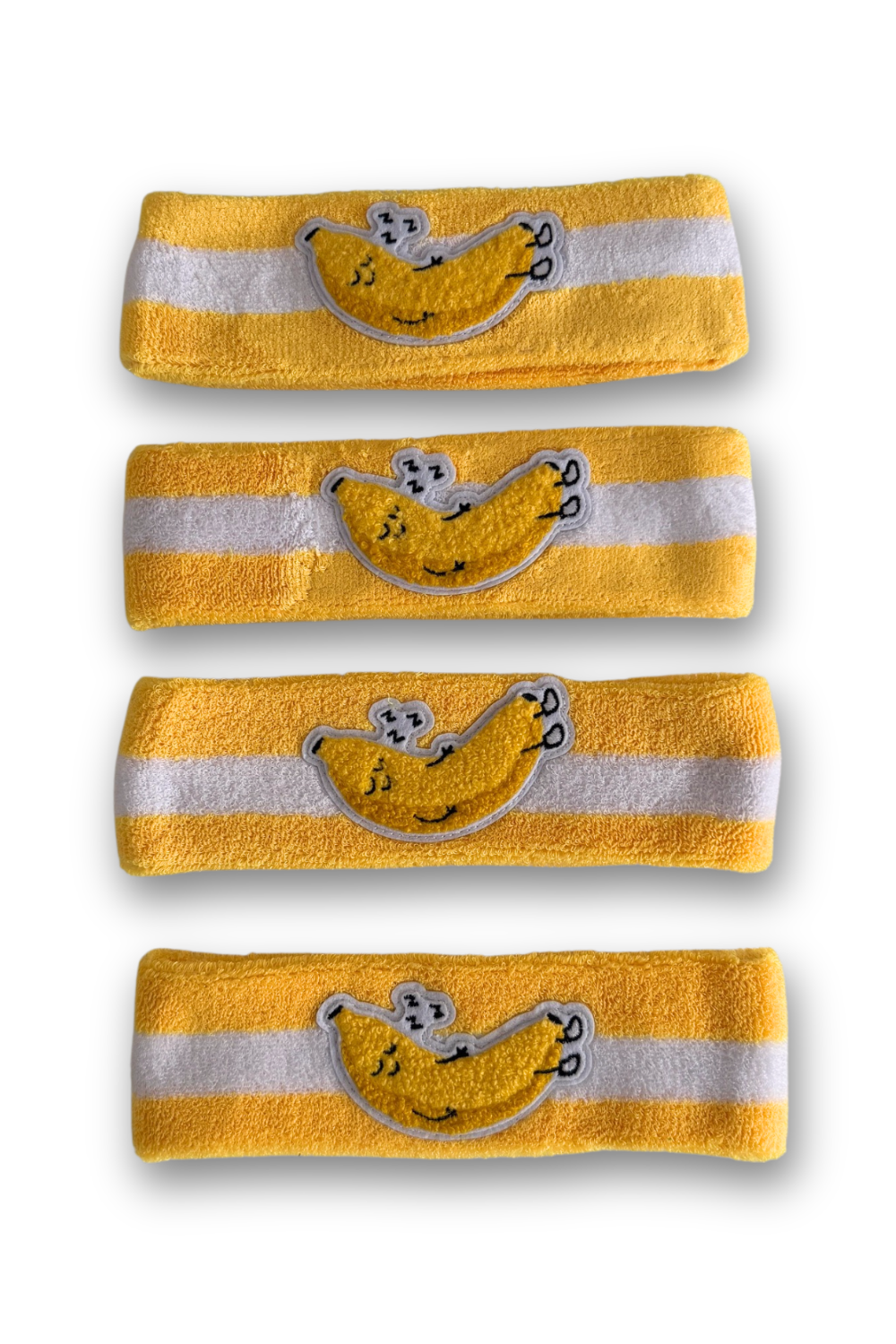 A super-soft terry headband featuring the cheerful Dodo Banana logo—made for little heads that love to move.
